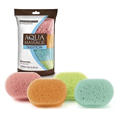 AQUA MASSAGE Loofah Puff, 4 Soft Bath Sponges Dermatologically Tested, Pack