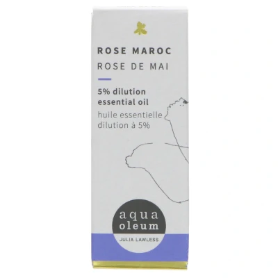 Aqua Oleum 5% Dilution Rose Maroc Essential Oil (10ml) is a pre-diluted, vegan blend of Rosa Centifolia essential oil in coconut base, offering a calming floral scent for aromatherapy and skincare. Safe for topical use, it’s ideal for relaxation and wellness routines—always dilute before application and follow safety guidelines.