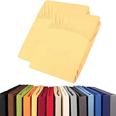 aqua textil Viana Fitted Sheet Double Pack 140 x 200 160 cm Yellow Cotton Jersey