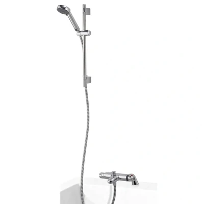 Aqualisa Midas 100 Bath Shower Mixer - Chrome. The Aqualisa Midas 100 Bath Shower Mixer (MD100BSM) is a stylish and practical solution for modern bathrooms, offering the perfect blend of safety, performance, and design. Built from high-quality materials and finished in a sleek chrome coating, it delivers reliability and elegance in equal measure. With thermostatic temperature control and a 4-mode 90 mm Harmony handset, this unit is ideal for bathrooms where space is limited yet versatility is needed. Key Benefits Thermostatic ControlEnjoy safe and consistent water temperature every time you shower or fill your bath. The thermostatic cartridge regulates hot and cold flow to prevent sudden spikes, protecting the whole family. Flexible Bath and Shower FunctionDesigned for versatility, this mixer features an easy-to-use diverter that lets you switch effortlessly between filling the bath and enjoying a shower. Harmony Adjustable Shower HeadSupplied with a 90mm Harmony shower head, the kit offers four spray patterns, including a refreshing standard spray, invigorating massage, and an eco spray setting that helps reduce water usage without compromising comfort. Built-in Safety FeaturesThe integrated temperature override button ensures water stays at a safe, comfortable level, making it ideal for family bathrooms. Durable, Modern DesignA brass valve body, ABS controls, and chrome finish ensure long-lasting performance, while rub-clean nozzles make maintenance quick and easy. It can be installed either deck-mounted onto a bath or wall-mounted, and includes all the necessary brackets and fittings for both methods Genuine brand new Aqualisa product, covered by a Aqualisa manufacturer's guarantee.