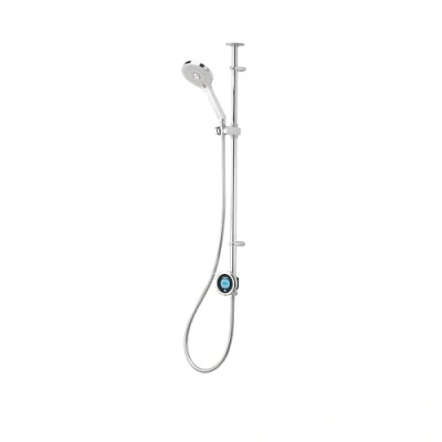 Aqualisa Optic Q Smart Shower Exposed with Adj Head - Gravity Pumped (OPQ.A2.EV.23). Optic Q Smart is now fitted with the new and improved Aqualisa SmartValve™ that delivers the most personalised showering systems available in terms of performance selection, safe, regulated temperature control and eco-friendly water usage. This is an adjustable height single outlet, handset and hose, cleverly integrated with an attractive, illuminated control screen and ceiling fixed slide rail. Simple cable and water connections run through the rail to the intelligent SmartValve™, which can be placed in the most accessible location 7.5 metres away from the shower area. With Wifi connection, the selected shower profile (pre-set or individually created) can be managed on a smart phone using the Aqualisa app or voice control with data available to check water usage and indicative costs. Suitable for approved low pressure water systems only. Optional eco mode on the SmartValve™ which can be selected for water saving up to 33% (water system dependant). Wifi, Mobile App, Google Home and Amazon Alexa enabled to allow you to control your shower remotely. Safe and satisfactory thermostatic showering with adjustable maximum temperature. Glide temperature control for simplistic use. Auto wake up' when you approach the controller. Timer feature allows you to set your shower duration. 130mm Vita handset with 3 spray patterns. Optional wireless remote. Genuine brand new Aqualisa product, covered by a Aqualisa manufacturer's guarantee.