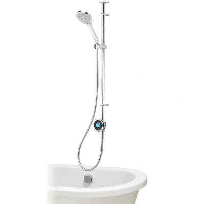Aqualisa Optic Q Smart Shower Exposed with Bath Fill - Gravity Pumped (OPQ.A2.EV.DVBTX.23). Optic Q Smart is now fitted with the new and improved Aqualisa SmartValve™ with an integrated diverter that delivers the most personalised showering systems available in terms of performance selection, safe, regulated temperature control and eco-friendly water usage. This is a flexible dual outlet system ideal for family preferences and needs, combining a bathfill function with an adjustable height, handset and hose, cleverly integrated with an attractive, illuminated control screen and a ceiling fixed slide rail. Simple cable and water connections run through the rail to the intelligent SmartValve™, which can be placed in the most accessible location 7.5 metres away from the shower area. With wifi connection, the selected shower profile (pre-set or individually created) and bath can be managed on a smart phone using the Aqualisa app or voice control with data available to check water usage and indicative costs. Suitable for approved low pressure water systems only. Optional eco mode on the SmartValve™ which can be selected for water saving up to 33% (water system dependant). Wifi, Mobile App, Google Home and Amazon Alexa enabled to allow you to control your shower or bath remotely. Safe and satisfactory thermostatic showering with adjustable maximum temperature. Glide temperature control for simplistic use. Auto wake up' when you approach the controller. Timer feature allows you to set your shower duration. 130mm Vita handset with 3 spray patterns and bath overflow filler. Optional wireless remote. Genuine brand new Aqualisa product, covered by a Aqualisa manufacturer's guarantee.