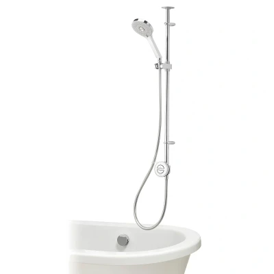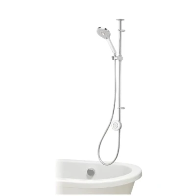 Aqualisa Unity Q Smart Shower Exposed with Bath Fill - Gravity Pumped (UTQ.A2.EV.DVBTX.23). Unit Q Smart is now fitted with the new and improved Aqualisa SmartValve™ with an integrated diverter that delivers the most advanced showering systems available in terms of performance selection, safe, regulated temperature control and eco-friendly water usage. . This is a flexible dual outlet system ideal for family preferences and needs, combining a bathfill function with an adjustable height, handset and hose, on a ceiling fixed slide rail, cleverly integrated with the push button control and temperature ready display. Simple cable and water connections run through the rail to the intelligent SmartValve™, which can be placed in the most accessible location 7.5 metres away from the shower area. With Wifi connection, showering choices can be managed from a smart phone using the Aqualisa app or voice control with online data available showing water usage and indicative costs. Suitable for approved low pressure water systems only. Thermostatically controlled showering with push button one start control. LED display to let you know your chosen temperature has been reached. Wifi, Mobile App, Google Home and Amazon Alexa enabled to allow you to control your shower or bath remotely. Mutliple showers can be controlled from 1 app. 130mm Vita handset with 3 spray patterns and bath overflow filler. Compatible with wired remote control. Optional eco mode on the SmartValve™ which can be selected for water saving up to 33% (water system dependant). Genuine brand new Aqualisa product, covered by a Aqualisa manufacturer's guarantee.
