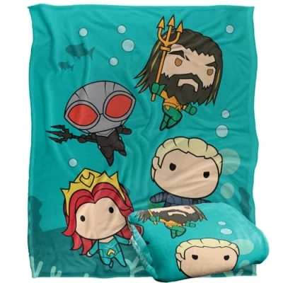 AQUAMAN and The Lost Kingdom Blanket, 152 x 127 cm Chibi Action Silky Touch Super Soft Throw Blanket