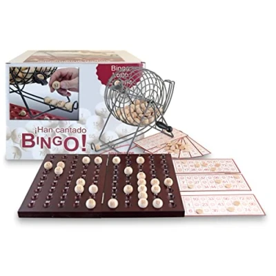 ▸ Numbered Wooden Balls: The bingo balls are made of wood and are clearly numbered for easy identification during play. The wood provides an authentic, traditional feel to the game, adding a touch of elegance. BALL TRAY - The set includes a wooden tray specifically designed to hold the numbered balls while being pulled from the drum. This tray helps maintain order during the game and makes it easy to see the balls called by all players. Product measures 10.9 inches X 37.40 inches HIGH-QUALITY GAME CARDBOARDS - The game includes high-quality playing cards with a clear and legible arrangement of numbers. These cards are sturdy and reusable, allowing you to enjoy bingo again and again without worrying about wear and tear. Product height 27.7 cm, Manufacturer: Aquamarine Games