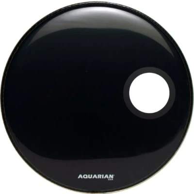 Aquarian Classic Clear Drumhead with Small Off-Set Port-Hole 24" Bass : Single Ply Smooth Black Gloss FinishUnique features include Safe-T-Loc Hoop and "Sound Curve" collar