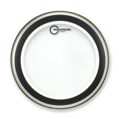 Aquarian Studio X Head Clear Single Ply Medium Weight Head Transparent Head with black ring Features unique Safe-T-Loc Hoop and Sound-Curve Collar Features a light weight muffle ring adhered to the underside. This helps to eliminate some unwanted high frequencies while still maintaining a warm open sound.