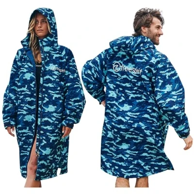 BlacksPerfect for surfers and wild swimmers, the robe will instantly warm you up when you're back on dry land. Featuring an oversized fit, it makes changing easy and feels like a warm hug as soon as you put it on! A waterproof exterior makes this Pro dry robe perfect for all conditions. It also features secure zipped pockets to stash valuables in when you're in the water. Warm up. Dry off. Get changed. Two-layer waterproof fabric with PFC-free Durable Water Repellent Super warm deep-pile fleece lining Long-length, oversized fit Fleece lined hood Full-length two-way zip with large puller for ease of use Two zipped hand pockets One internal zipped security pocket Adjustable cuffs Unisex design Materials: Main - 100% polyamide, lining - 100% polyester Waterproof: 5000mm Breathability: 2000mm Colour: Blue Camo Size Guide: S/M - Size M Chest: 39 - 41 inches (99 - 104cm) Waist: 33 - 35 inches (84 - 89cm) Length: 44.5 inches (113cm) L/XL - Size XL Chest: 45 - 47 inches (114 - 119cm) Waist: 39 - 41 inches (99 - 104cm) Length: 48.4 inches (123cm)