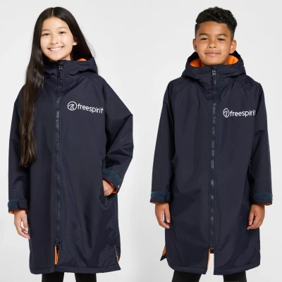 BlacksDesigned to beat the chill and ensure they can get changed anywhere, the Aquarobe Pro Kids is a junior version of the popular adult's Freespirit Aquarobe Pro. No more shivering under a flimsy towel, this super-cosy robe will wrap them in warmth and help them dry off. It also makes it easy to get changes anywhere thanks to the baggy fit. This Pro version is lined with thick, soft fleece and has a durable waterproof exterior. It also comes with secure zipped pockets to store valuables and a fleece-lined hood for full, toasty coverage. Waterproof outer fabric Super warm deep-pile fleece lining Long-length, oversized fit Fleece lined hood Full-length two-way zip with large puller for ease of use Two zipped hand pockets One internal zipped security pocket Adjustable cuffs Unisex design Outer material: 200D*320D nylon oxford, PU coating Lining - 180G fleece Waterproof: 5000mm Breathability: 2000mm