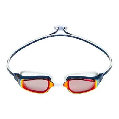 AQUASPHERE Fastlane Swimming Goggles for men and women with silicone strap, curved lenses, anti fog leak pool competition, RED TITANIUM MIROR