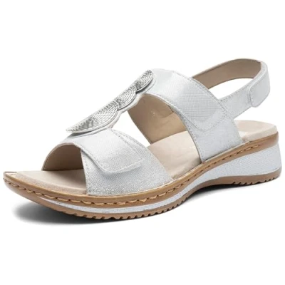 Butter-soft leather upper and lining All straps with fastener for optimal fit The fashionable jewellery decoration on the instep gives the sandal that certain something Heel type: wedge Age Group: Adult