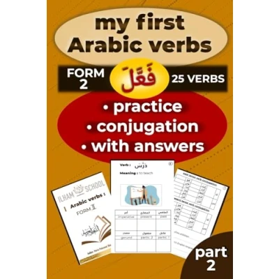 Arabic VERBS FORM 2 /GRAMMAR & CONJUGATION WITH SENTENCES / practice and answers/ Verb conjugation/with pictures/Arabic grammar workbook/ ... language (MSA for beginners)