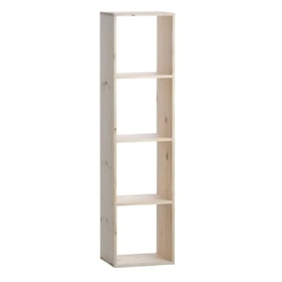 Storage cube 4 compartment 36x139x30cm Quadruple cube with 2 shelves in solid natural pine wood. For painting, varnishing or staining Easy to assemble. Dimensions: 36 x 30 x 139 cm