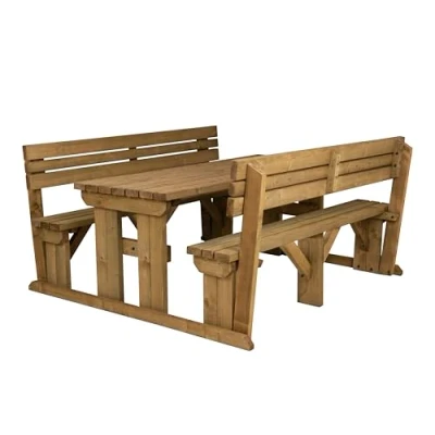Arbor Garden Solutions Wooden picnic table and benches with backrest, Alders patio furniture set (8ft, Rustic Brown)