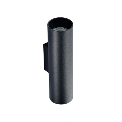 Brinja is a 2-bulb black wall lamp with double light emission upwards and downwards and interchangeable rings in black and gold. Brinja is equally at home in private rooms and commercial environments. It is a wall lamp that emits light both upwards and downwards, as it is equipped with two GU10 sockets. These can be fitted as desired, whereby lamps with LED technology are of course particularly recommended thanks to their efficiency and long service life. The surface of the cylindrical aluminium luminaire housing is finished in matt black, which always impresses with its cool elegance and basically suits many modern interiors. The scope of delivery includes an additional set of reflectors, which contrast beautifully with the black of the luminaire body as they are finished in an attractive gold tone that also positively influences the lighting effect in terms of warm light emission. These golden rings can be used as an alternative to the black reflectors.