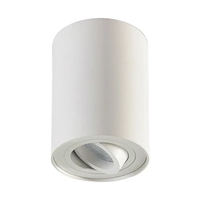 Lights.coCylindrical surface-mounted ceiling spotlight Jolina with adjustable light emission This surface-mounted ceiling spotlight with its white surface has a simple and modern design, making it suitable for a wide range of applications. It is operated with a GU10 high-voltage halogen bulb up to a maximum of 50 watts. The light emission can be variably adjusted thanks to the 25° movable internal reflector, so that certain areas in the room can be skilfully highlighted - with high-quality, screwless quick-connect clamp (durable, secure and tool-free spring mechanism)