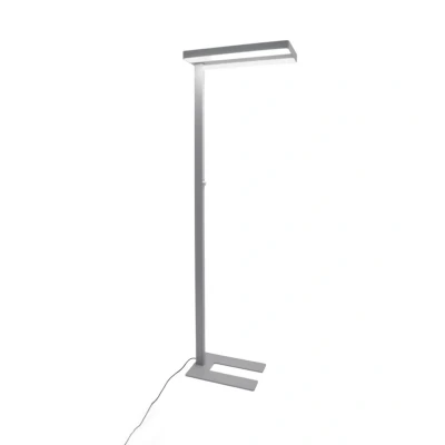 Bright LED floor lamp Logan for offices and studies with direct-indirect light and dimmer Whether it's a real office or a home office within your own four walls, the Logan LED floor lamp can be recommended in both cases because it provides bright light that is easy on the eyes at any time of day and ensures that you can work with concentration for long periods of time. It is GEWISSly extremely practical that the brightness can be optimally adjusted using the integrated dimmer, because then you don't have to worry about the light being too bright or too dim. Instead, you can adjust the luminous intensity to suit your personal needs. A U-shaped base makes it as easy as possible to position the LED floor lamp, which is particularly useful if a table leg is in the way, as it can be optimally framed by the base. In addition, the light shines evenly upwards and downwards, providing equal amounts of direct and indirect light, which corresponds to a particularly natural light sensation. - UGR < 19 - Flicker-free