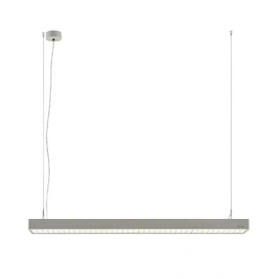 LED office hanging light Susi with dimming function via DALI This modern light impresses with its dual function, as it can be used not only as a targeted work light, but also as natural ambient lighting for the office. This is made possible by the fact that the Susi LED pendant light can emit light both directly downwards and indirectly upwards. The permanently installed LED module provides good illumination of the desk with cool white light, enabling long periods of concentrated work. The light can also be dimmable (DALI) to suit individual requirements. As the UGR value is below 18, there is no glare when working and the pendant light is well suited for computer workstations. The housing is made of aluminium and is robust and impact-resistant. The surface finish was designed in a trendy silver, which is very neutral in colour and can therefore be easily integrated into many different interiors. Susi is an ideal work light for the commercial sector. The pendant light can also be turned into a trunking light that can be extended with several lights. The corresponding accessories are included with the item. In this way, up to 10 lights can be connected to each other via a power feed; if there are more than 10 lights, the power must be fed in again. Technical data: - IK04 impact resistance rating - direct and indirect light - DALI dimmable - UGR < 18 - flicker-free < 4% - LEDs in cool white light colour - RAL 9006 finish
