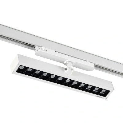 Lights.coSwivelling Millay LED spotlight for three-circuit track, glare-free, flicker-free, UGR < 15 This spotlight offers numerous advantages for use in a commercial environment and can also be used in offices, as the LEDs produce pleasant, glare-free light and are also flicker-free. The shape of the spotlight is elongated and it is attached to the track lighting system with a joint so that it can be swivelled as required. The advantage of this is that the light can be customised as much as possible. This also applies to track systems in general, which can be fitted with any number of different lights. Visually, the LED spotlight with its white surface can be combined well with modern furnishings and Millay is also a first-class choice for shop lighting - for a three-circuit track - glare-free - UGR < 15 - flicker-free - SDCM < 4