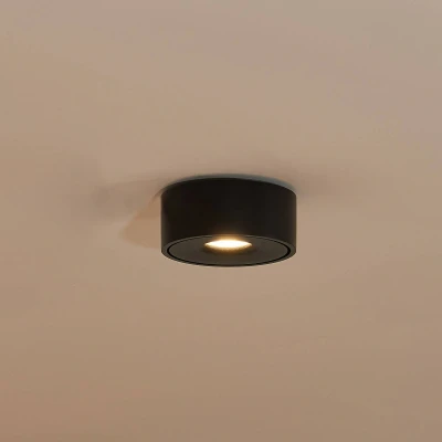 Lights.coModern LED ceiling light Rotari in a dark design Rotari impresses with its clear, round design and fits wonderfully into different environments. Its housing is made of aluminium and has a black finish, making it perfect for combining with modern styles. The warm white light is emitted directly downwards at an angle of 34°, minimising the risk of glare. This light is ideal for use as shop lighting, as it scores highly with its CRI value of over 90. This light is extremely bright and can be dimmable with a leading edge phase dimmer or trailing edge phase dimmer if required.