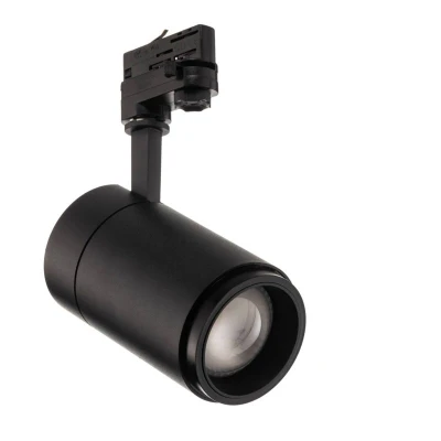 Black LED track spotlight Nanna - adjustable beam angle, for three-circuit track, rotatable and swivelling This track spotlight is compatible with common three-circuit track systems and can be used both privately and commercially. The cylindrical-shaped LED lampshade has an aluminium housing in black and an internal lens whose light beam angle can be changed from 15°, which is rather narrow and pinpoint to create spot-shaped light, to 60°, which corresponds to a wider light emission to illuminate a slightly larger area. There are small markings on the spotlight for correctly setting an angle and the spotlight is very suitable for professional illumination of commercial spaces, with the variable adjustment options allowing a precisely tailored lighting situation to be created, especially as the spotlight itself can also be rotated and swivelled. In addition to good efficiency and a long service life and the adjustable setting options, the LED track spotlight Nanna is also a light source that scores with very good colour rendering, as the CRI value here is over 90, so that the colours in the room can be displayed as faithfully as possible, even if no daylight is available.