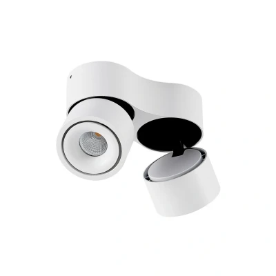 Rotari 2 Surface Mount Spot 2x6.1W White is a practical double spotlight that illuminates interiors to their best advantage. With its simple design, the light is suitable for private, public and commercial spaces – in short, anywhere where an effective spotlight is needed to accentuate specific areas. The light has two lampshades in a classic cylindrical shape. The lampshades sit on a bracket on the ceiling that mimics their shape and is curved. From here, the lampshades can be tilted downwards at a 90-degree angle. In addition, they can be rotated up to 350 degrees, allowing you to adjust the direction of the light very precisely. This is a great advantage with this model, as it has a beam angle of 34 degrees and thus provides a very focused light. The light comes from the lamp's LEDs, which are installed behind each lampshade and emit an efficient, warm white light.