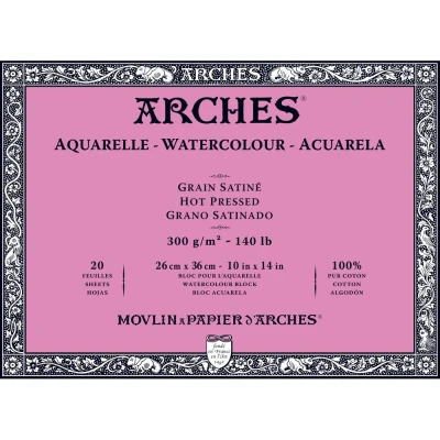 Arches 26 x 36 cm 300 gsm Hot Pressed Glued on 4 Sides Block Watercolour Paper Natural White (Pack of 20 Sheets)