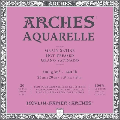 ARCHES Aquarelle Pad 20 Sheets 31 x 41 Glued on 4 Sides 300 g/m² Satin Grain, Natural White, Fruit Edges