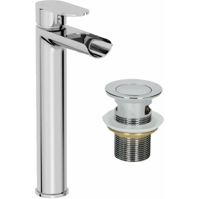 Architeckt® Edsberg Bathroom High Rise Waterfall Basin Sink Mixer Tap with Waste for Countertop Modern Mono Round Single Lever Handle Faucet Sinks, Chrome