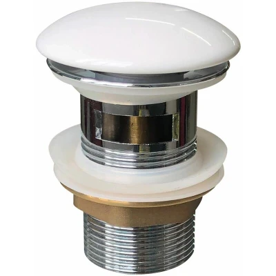 General description This Architeckt Slotted Pop Up Basin Waste in Gloss White is a stylish and practical solution for contemporary basins that do not accommodate a traditional plug. Its slotted design allows for use with a basin overflow, making it an ideal choice for modern bathrooms. Technical specifications Material - cover: ceramic Material - tube: brass Guarantee: 2 years Installation Unscrew the existing waste Insert the new waste into the basin Screw back together with a small bead of silicone sealant between the waste body and the basin Easy installation process Usage The pop-up operation is simple: press the top down to close and press again to open, eliminating the need for additional tap parts or chains.