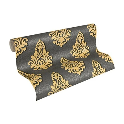 Architects Paper Nobile Classic Patterned Wallpaper Textured Cream Metallic, Black, 959815