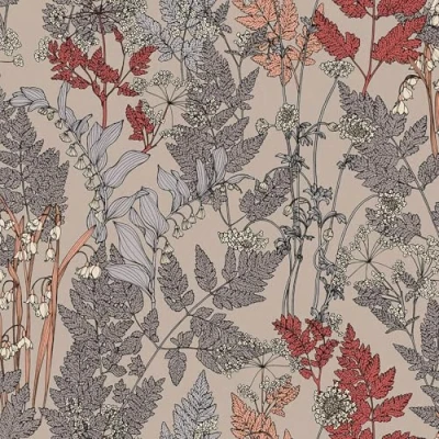 WallpaperDirectWalk through a peaceful field of country flowers, featuring tall, delicate stems and bright floral blooms. Seen here in the Taupe colourway.