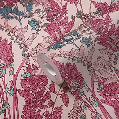 WallpaperDirectWalk through a peaceful field of country flowers, featuring tall, delicate stems and bright floral blooms. Seen here in the Pink colourway.