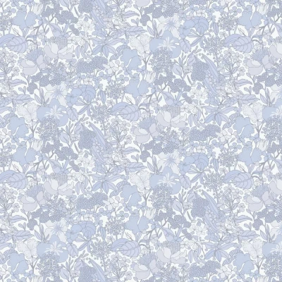 Stunningly vibrant and contemporary, a linear style design showcases intricate detail and style across this floral wallcovering. Seen here in the Baby Blue colourway.