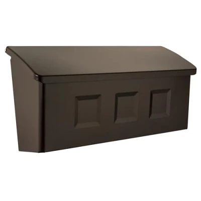 Mailbox is 14.7 in. W x 7.1 in. H x 4.1 in. D Roof lifts opens for easy access mail retrieval Simple yet stylish with three embossed square panels on front Galvanized steel construction that is fully powder coated inside and out for corrosion resistance with stainless steel hinge pins 4-pre-drilled holes makes for an easy installation. Includes installation instructions and mounting hardware which includes; screws and plastic anchors for brick and other masonry installations, Weight: 2.5 Pounds, Manufacturer: Architectural Mailboxes