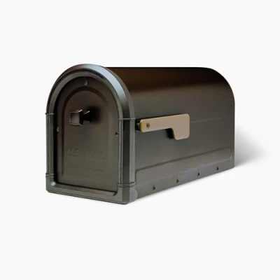 Decorative frame and cast aluminum knob Galvanized steel construction that is fully powder coated inside and out for added corrosion resistance Reinforced door bracket for added rigidity Predrilled 4 in. x 10 in. mounting holes in floor allows for easy installation Embossed side panels provide a place for house numbers to be applied Front access door opens wide to allow for easy mail removal Galvanized steel flag fully powder coated Assembled with rust-free POM hinge pins Mailbox is 8.7 in. W x 10.9 in. H x 20.6 in. D Installation instructions included, Manufacturer: Architectural Mailboxes