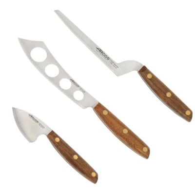 Arcos Serie Nordika Set 3 Cheese Knife Stainless Steel Nitrum Ovengkol Wood Handle 100% Natural FSC Recycled Packaging