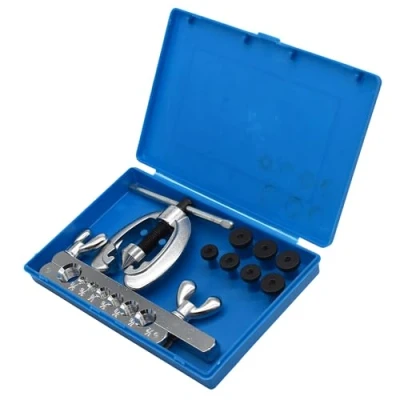 9 Piece Pipe/Brake flaring kit for automotive and professional plumbing applications Supplied in a practical blue carry case for convenient storage and transport, and includes Flaring Bar, 45° Flare Press and Seven Dies. With this kit you can make single and double lap flares in copper, brass and aluminium pipes. Suitable for 3/16”,1/4”, 5/16”, 3/8”, 7/16”, 1/2” & 5/8” pipes. Compatible with Arctic Hayes 3-16mm pipe cutter (AHMTC3-16).