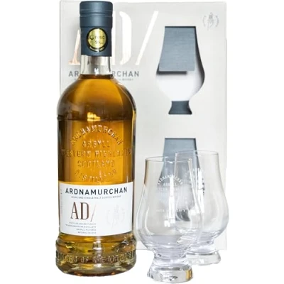 Ardnamurchan AD Whisky Gift Pack Highland Single Malt Core Expression with 2 Glasses 46.8% ABV 1 x 70cl Bottle Crafted in Scotland by the Distillery