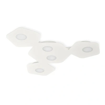 Each flush fitting is comprised from small pentagon shapes hosting one lamp and larger hexagons holding two or four lamps. This variation of shapes, sizes and lampholder positioning produces unusual composites of light distribution. This is simple to install and maintain with its magnetic assembly structure which provides a source of light from the GX53 diffused lampholders, adding even more appeal.