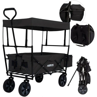 Arebos Foldable Cart with Roof Garden Transport 2X Net Pockets and 1x Outside Pocket Solid Rubber Tires (Black)