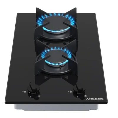 ManoManoGeneral description The AREBOS gas hob is a sleek and efficient 2-burner built-in stove designed for natural gas and propane use. It features a powerful 3000 W rapid burner and a 1750 W semi-rapid burner, making it ideal for various cooking methods including roasting, steaming, and deep-frying. The stove is constructed from polished safety glass with frosted enamel brackets, ensuring durability and ease of cleaning. Technical specifications Power: 4.75 kW Tension / frequency: AC220-240 V 50/60Hz Rear cooking area power: 3.0 kW Front cooking area power: 1.75 kW Dimensions (L * W * H): 303 x 520 x 95 mm Built-in dimensions (W * L): 475 x 255 mm Operating pressure for propane gas: 50 mBar Energy efficiency: 55.0% Net weight: 5.5 kg Flame distributor: Aluminum Injector holder: Aluminum Injector: Copper Color: Black Power wire length: 1 m Power plug: Type F (Schuko - adapter for UK sockets is required) Brand: AREBOS Compatibility and accessories Includes pre-assembled natural gas nozzles