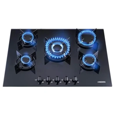 Arebos Gas stove 5 flames Glass ceramic Incl. grates & safety pilot Self sufficient Suitable for natural and propane hob cooker