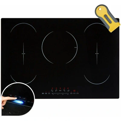 [Multifunctional] The AREBOS induction hob with 5 cooking zones is a great partner for cooking. The integrated timer (1–99 min) makes cooking easier and turns it into an enjoyable leisure activity. The AR-HE-IKF80 also features functions such as a residual heat indicator, booster, flex zone, and child lock. [Powerful & Compact] The 9800 W induction hob offers 1–9 adjustable power levels. These can be continuously adjusted using the slide touch function. Equipped with 5 cooking zones of 2x 1600 W, 2x 2000 W and 1x 2600 W. With compact product dimensions of 77 x 52 x 5.8 cm, the hob fits even in the smallest kitchens. [Flexible & Good] The self-sufficient induction hotplate with 2 flex zones is suitable for pans and pots made of iron, stainless steel, and alloy. This means you can easily indulge in culinary delights with your favorite equipment and enjoy great evenings with family and friends. [Safety First] The 77 cm wide induction hob has overheating and overflow protection, which automatically switches off the hob if liquids overflow or it overheats. In addition, a symbol display alerts you to hot cooking zones so that burns and accidents can be avoided. A child safety lock is also installed to protect your loved ones. [Easy Care] The surface of the AREBOS induction hob is made of black glass ceramic and is extremely easy to wipe clean, making it very easy to maintain. You also get a free scraper for cleaning the hob!