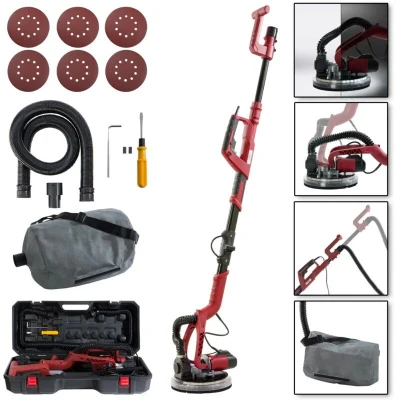 Arebos Long Neck Sander Drywall Wall Ceiling 750 watt, Ø 225 mm Telescopic Rod Suction System Swivel Head with LED Including 6 Sanding Discs and case