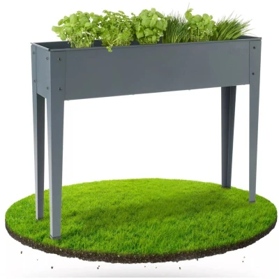 General description The AREBOS raised bed is designed for optimal gardening, making it perfect for balconies and terraces. Its robust metal construction allows for flexible gardening both indoors and outdoors, creating ideal conditions for herbs, vegetables, and flowers. The ergonomic height of 80 cm enables comfortable gardening without straining your back, while the raised position protects plants from small animals. Technical specifications Load capacity: 50 kg Total dimensions: 101.5 x 26 x 80 cm Planter dimensions: 100 x 25 x 20.8 cm Capacity: approx. 45 litres Material: powder-coated steel Material thickness: Sides: 0.6 mm, base: 0.7 mm, legs: 1.1 mm Drainage hole: Ø 12 mm Weight: 5.9 kg Colour: Anthracite Other information One drainage hole to allow excess water to drain away Maintenance-free & weatherproof Rust-resistant, robust and durable metal frame Easy to clean with dirt-repellent surfaces Ideal for use on the patio, balcony, garden, and indoors Scope of delivery: 1x