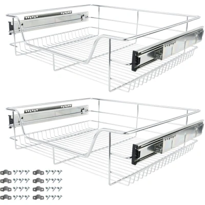 General description The AREBOS Telescopic Drawer is designed to eliminate clutter and maximize space under hard-to-reach cupboards and sinks. It provides a clear layout for kitchen utensils and optimizes cupboard depth, making it a functional upgrade for your kitchen unit. Technical specifications Model: AR-HE-TS60X2 Dimensions including rails: approx. 57 x 44 x 14 cm Load capacity: max. 20 kg per drawer Material: chrome-plated iron Brand: AREBOS Compatibility and accessories Suitable for cabinet widths of 30, 40, 50, or 60 cm Scope of delivery includes 2 telescopic drawers, 2 mounting materials, and 1 instruction manual Installation Installation is simple and can be done using two methods: you can mount the AREBOS drawer to a drawer or directly in the cupboard. All necessary screws are included for easy self-installation. Usage The AREBOS telescopic drawer is multi-functional and can be used in various areas such as: In the kitchen for storing and organizing food, pots, and plates In