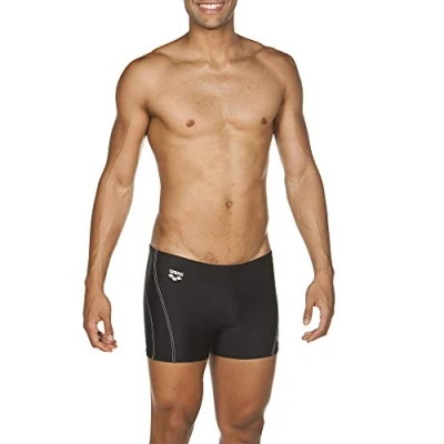 Extremely comfortable, stretchy and sporty men's swim shorts that fit like a second skin arena MaxFit Eco fabric: 4-way-stretch, chlorine and salt water resistant, UPF 50+ UV protection, quick-drying, perfect fit and maximum comfort, made from recycled polyamide Internal drawstring, front lining, side length: 27 cm. The fabric of this product has the STANDARD 100 by OEKO-TEX label. Ideal for fitness and leisure swimmers doing any water activity at the pool, at the beach and in any other body of water. 80% Polyamide, 20% Elastane (eco-friendly fabric: 100% of Polyamide is recycled)