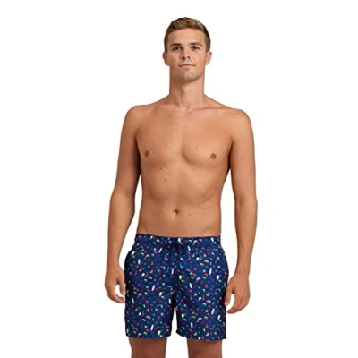 Comfortable and athletic men's beach boxers with vibrant prints celebrating arena’s connection with water Soft and quick-drying fabric made from recycled polyester Equipped with side pockets, external drawstring and mesh inner brief. Side length: 41.5 cm. The fabric of this product has the Global Recycle Standard Certification. Ideal for swimming, leisure and sports activities in the pool or at the beach 100% Polyester (eco-friendly fabriy: 100% of the Polyester is recycled)