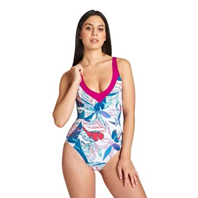 Arena Women's W Cecilia Wing Back One Piece Swimsuit, White Multi Grape Violet, 40